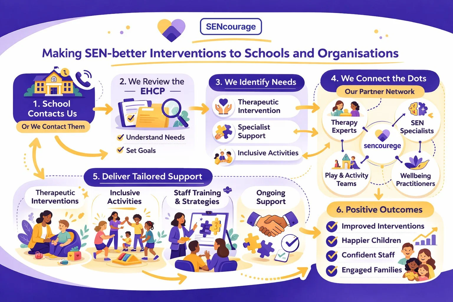 We have over 100 partnerships across schools, specialist SEN centres, therapists and family networks, working collaboratively to ensure every intervention is joined-up, practical and purposeful.